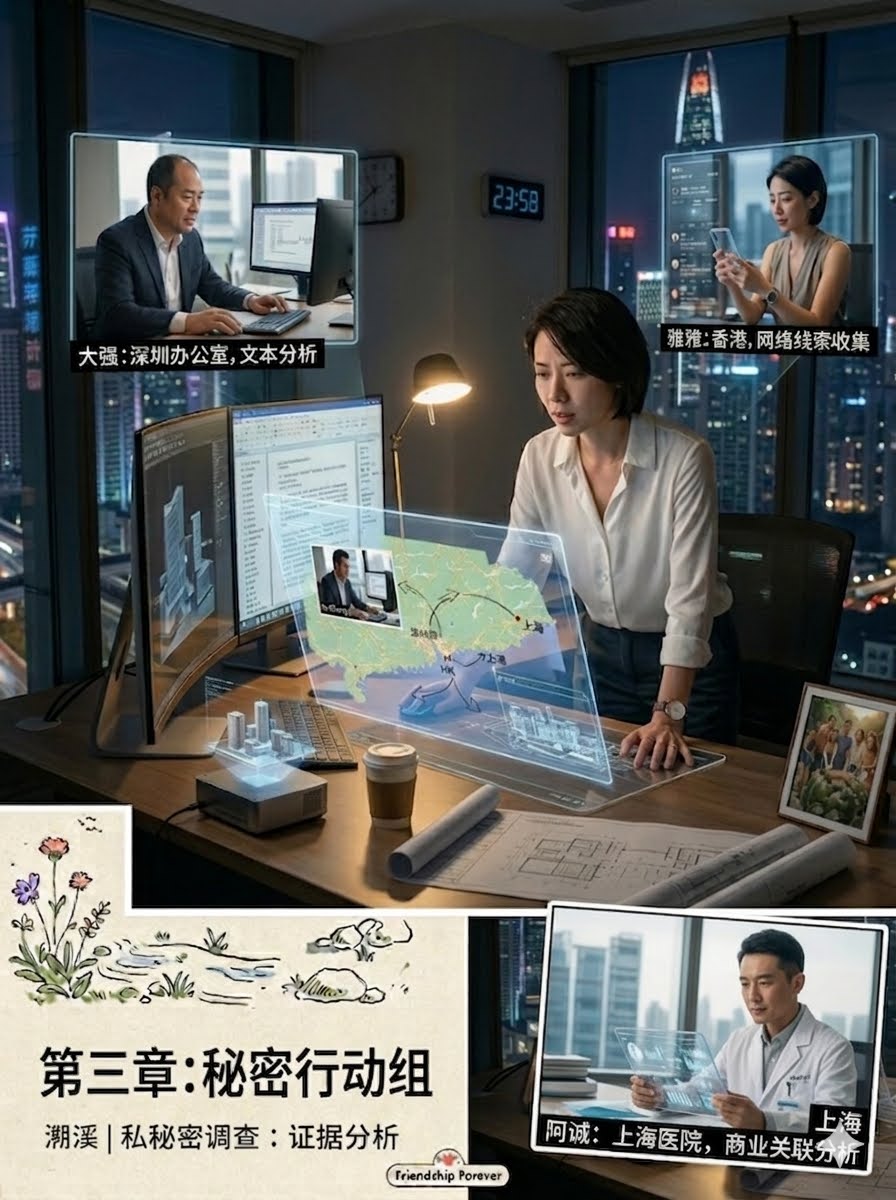 莉莉的丈夫和孩子被暂时“隔离”在行动之外。核心组(深圳、香港、上海多地联动)展开了紧张的调查。在深圳这座讲究效率的城市,他们用最原始、最坦荡的信任,构建了一个高效的战斗堡垒。