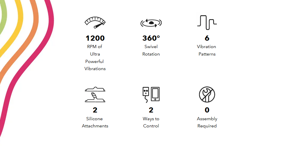 - 6 vibrating patterns and 360 swivel rotation with low to high variable speeds