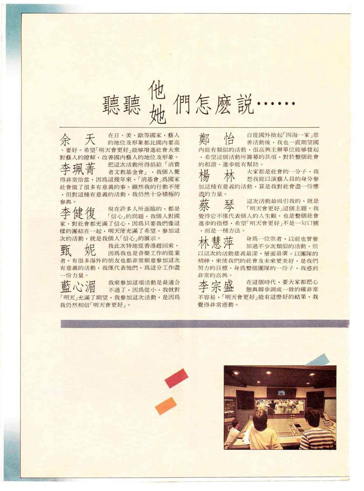 于是Google了下这首歌的背景,感慨彼时的娱乐圈还有如此大道公益温情,但其背景又参杂着政治利用的算计,在此摘录维基百科的资料: