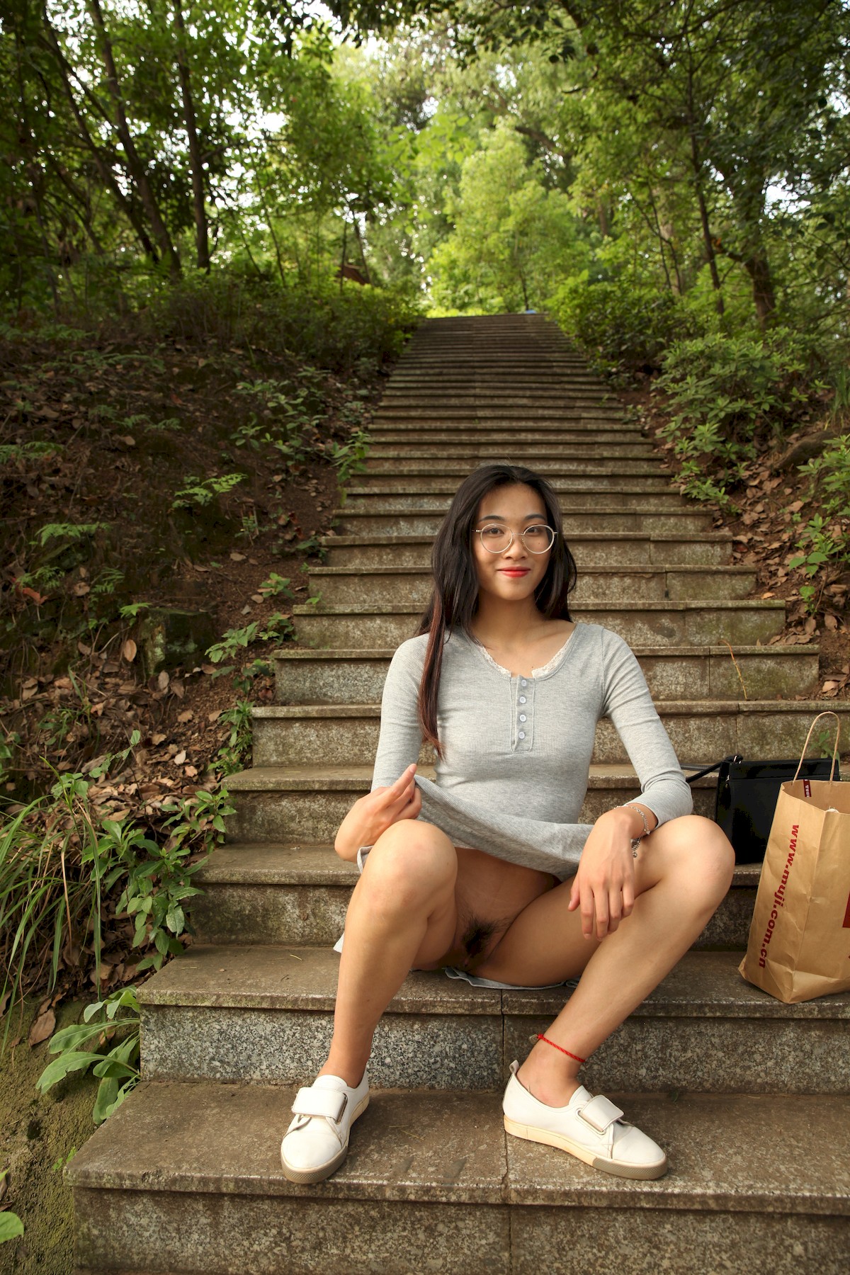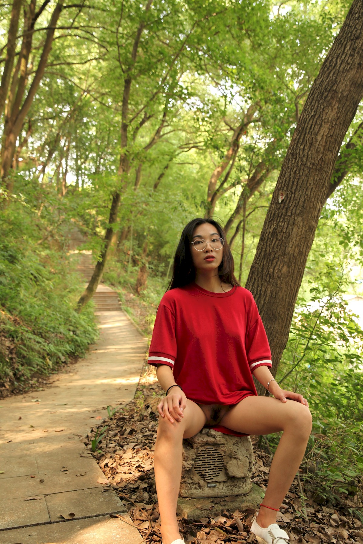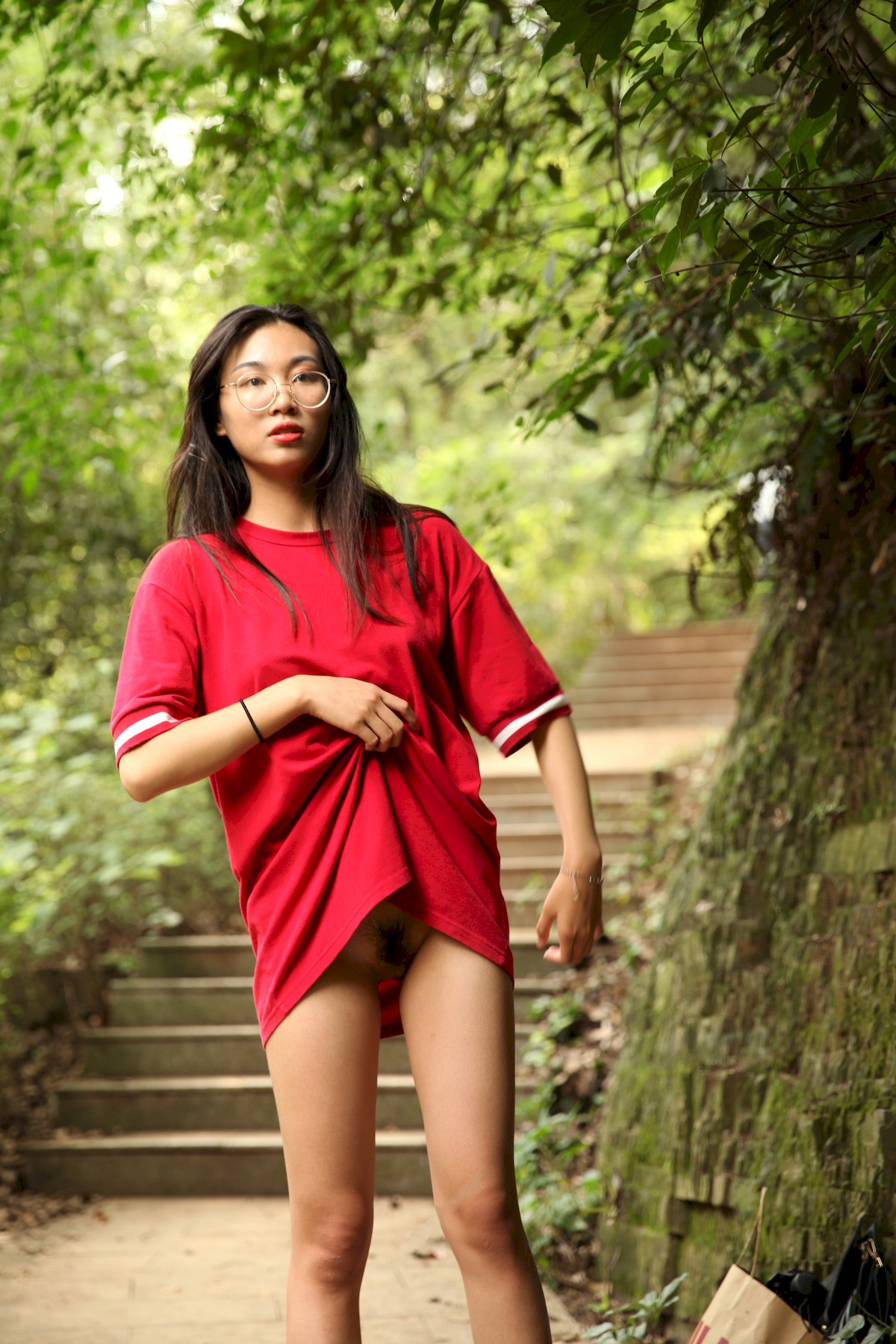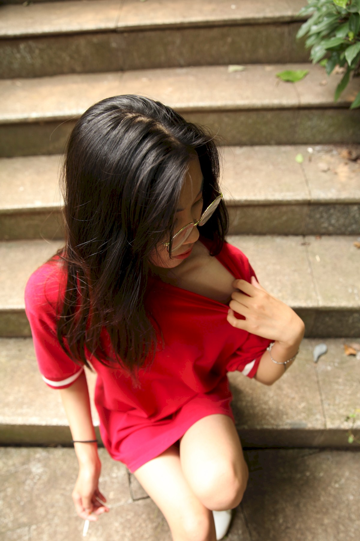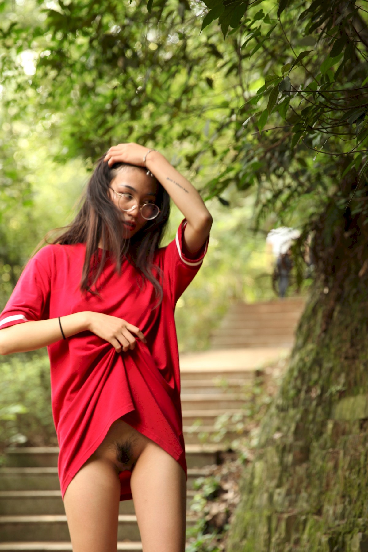 在公园台阶上欣赏完长发红衣女人国模芳芳的性感屁股和圆润奶子,到了酒店进一步“验货”,发现是抽烟的陈年老逼,久经人生往来进出之事