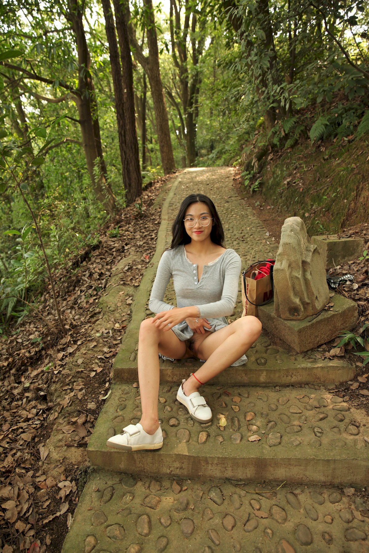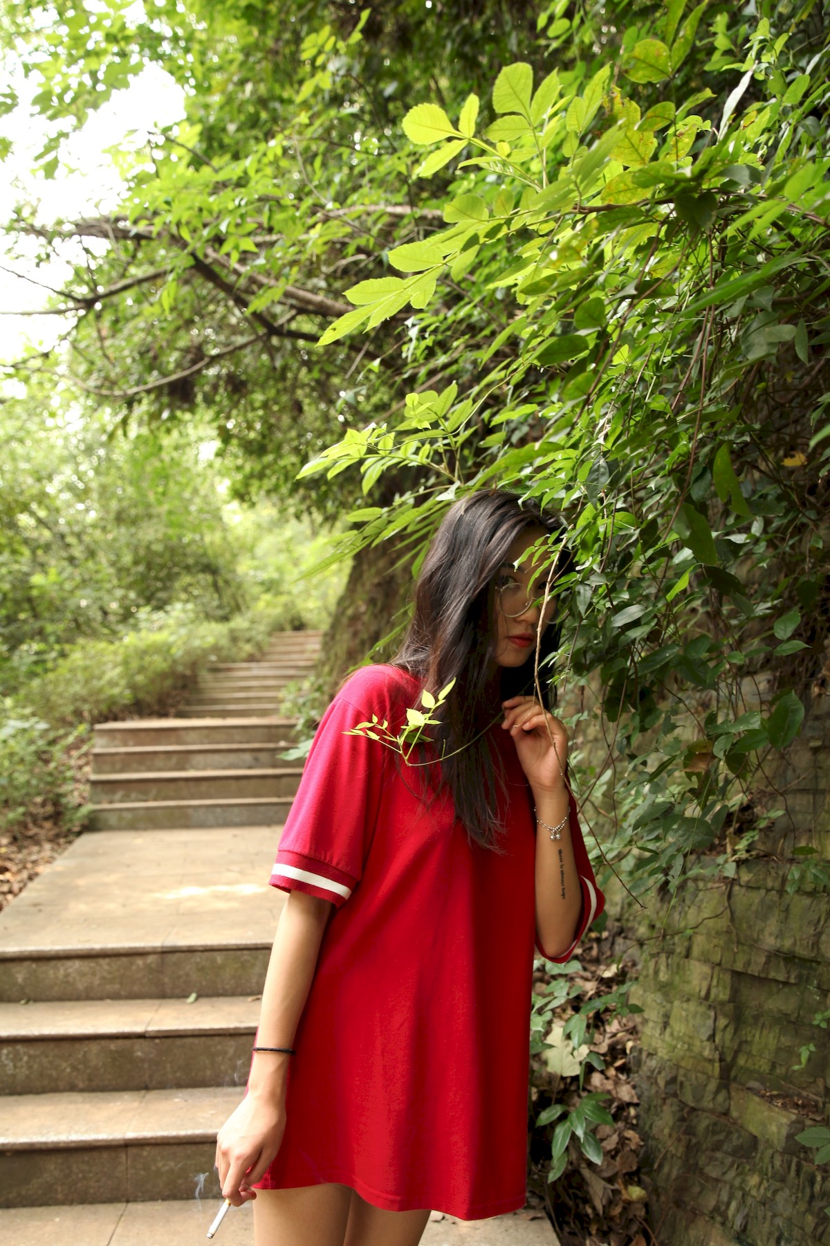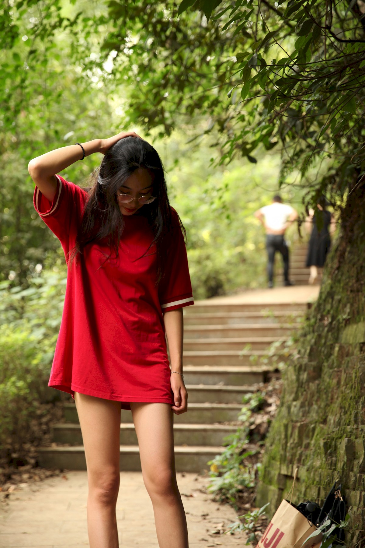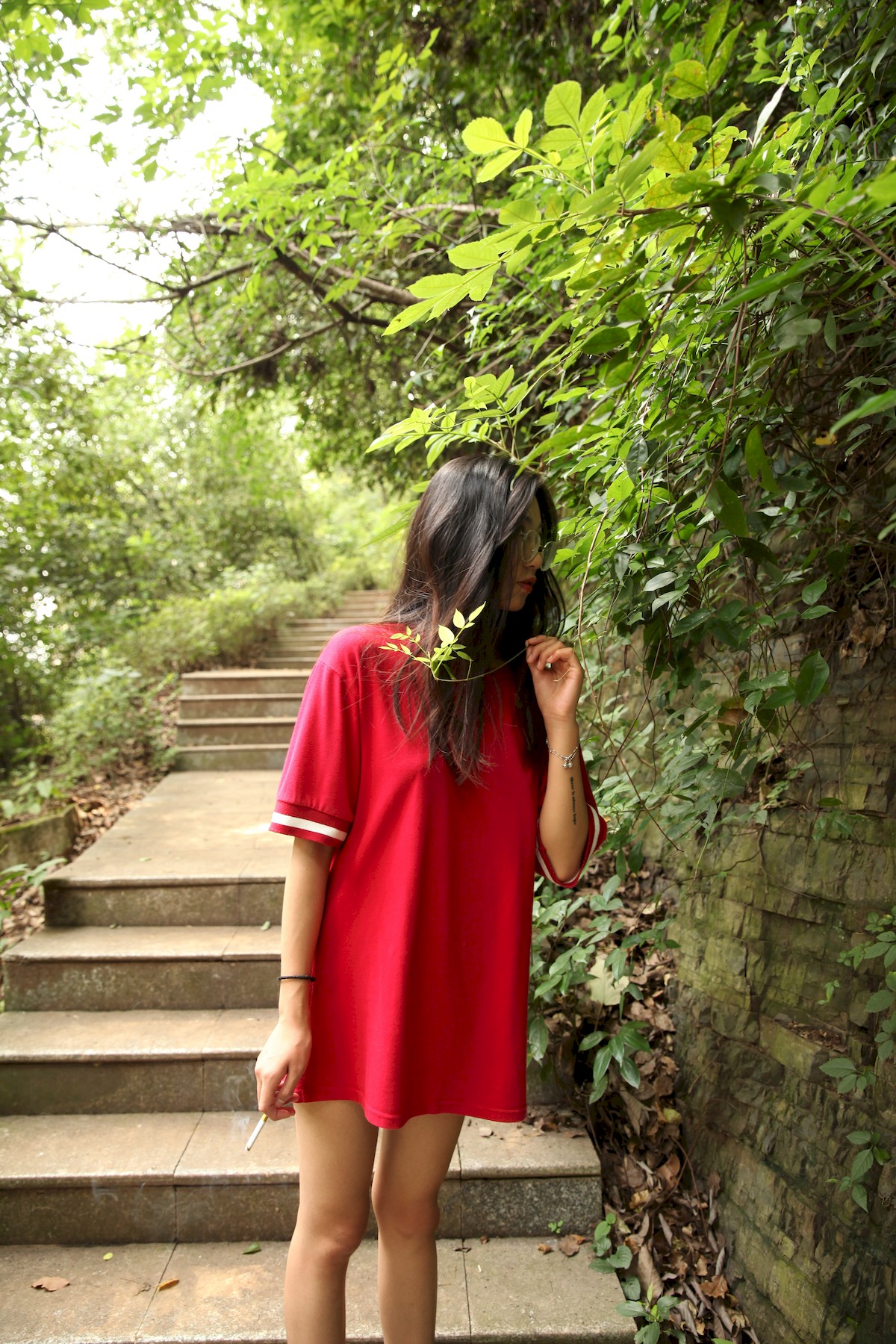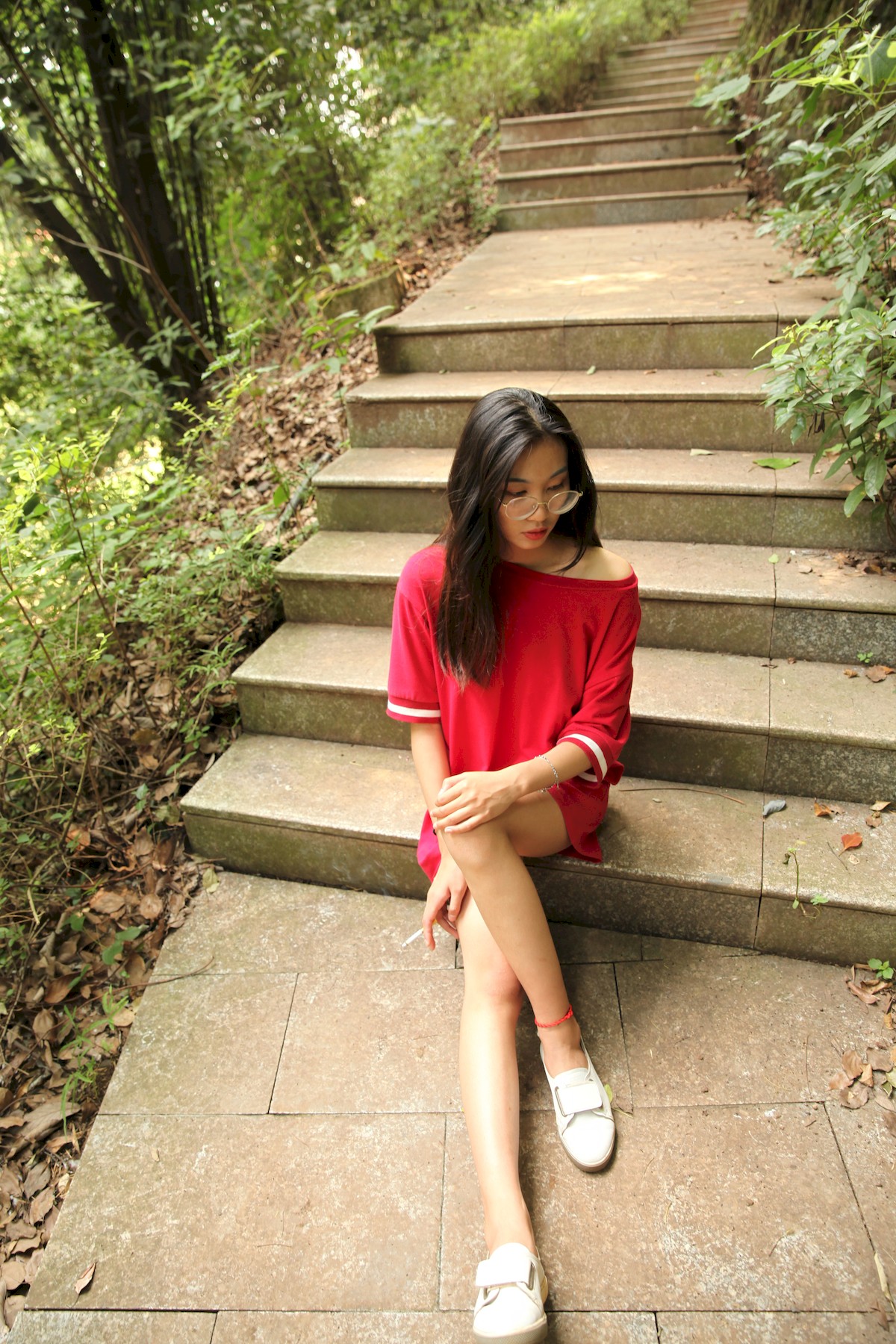 在公园台阶上欣赏完长发红衣女人国模芳芳的性感屁股和圆润奶子,到了酒店进一步“验货”,发现是抽烟的陈年老逼,久经人生往来进出之事