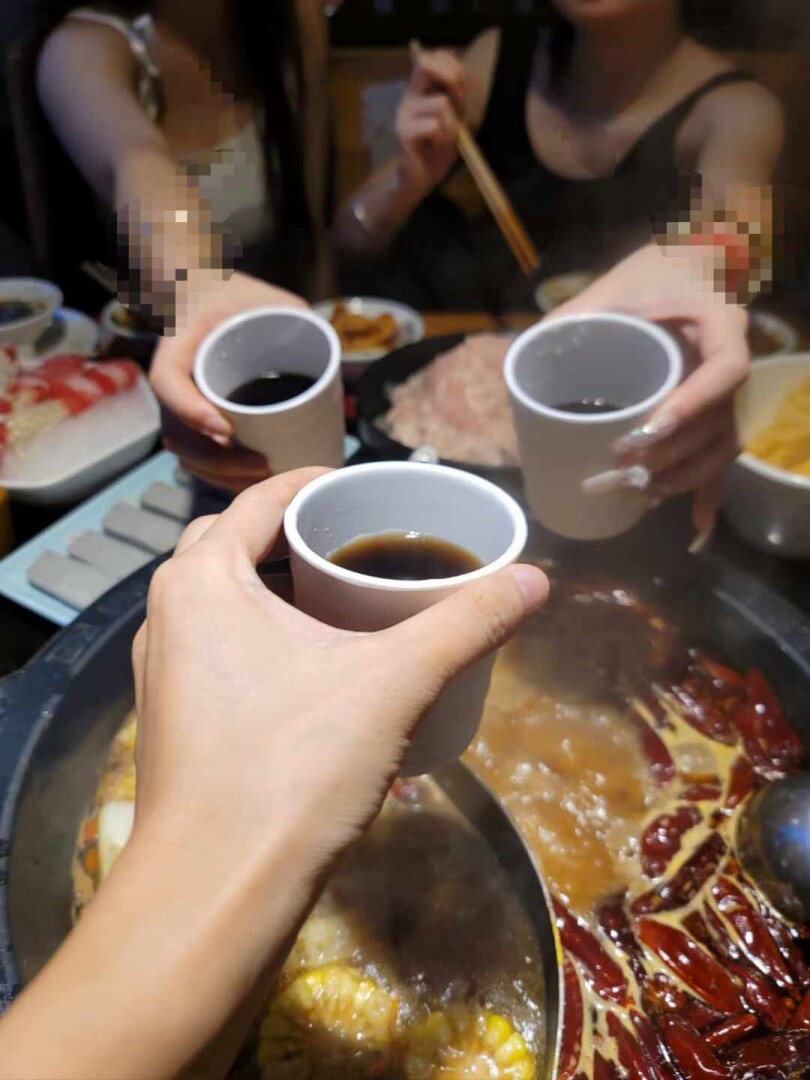 第二天中午起床后,跟老五和闺蜜去吃了火锅,3人一起干杯,像一家人一样,珍惜这份难得的情谊。