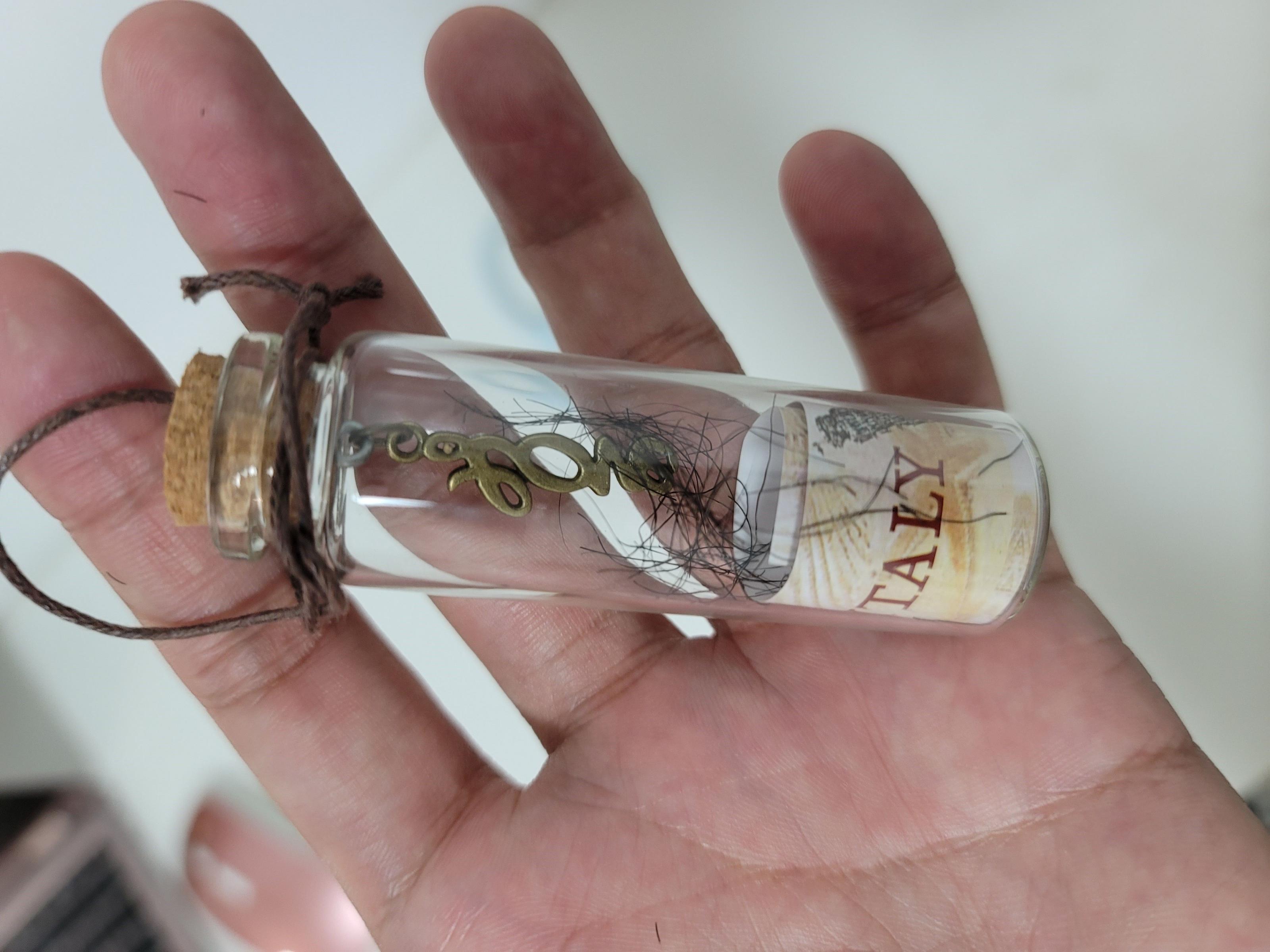 旅行的第二天,突发奇想,剪了一戳阴毛放瓶子里,留着纪念品。