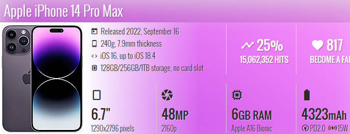 - 相机: iPhone 14 Pro Max