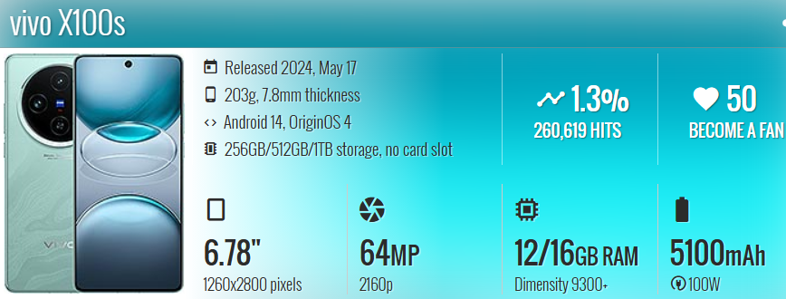 - 型号:vivo X100s