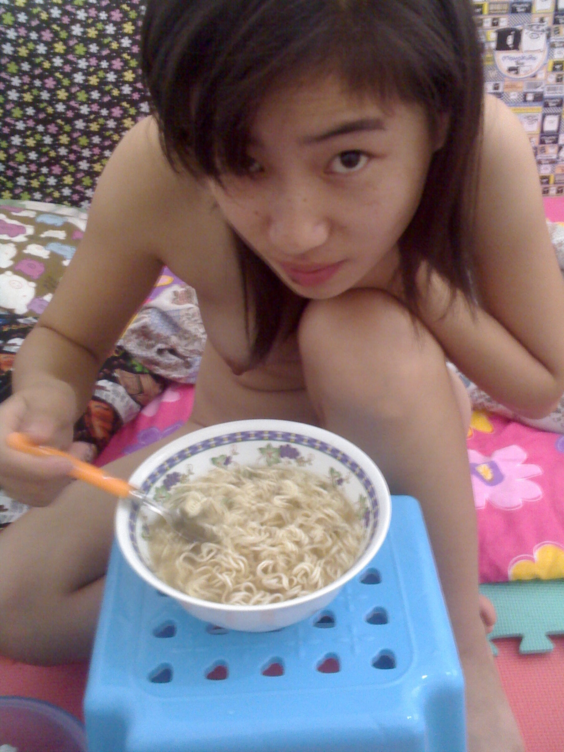 被男人用脚掰开阴唇露出逼洞,精液外射在小腹上,然后骚货光着身子吃泡面