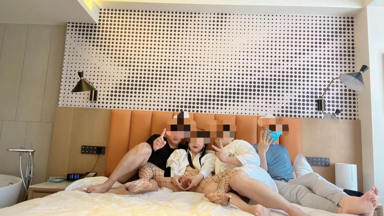 第一次当单男,是以前的一个群里认识的大哥,我称之为峻德大哥。机会来的很突然,他说要来这边玩,让我找几个人一起艹嫂子,翻遍夫妻群的好友,恰巧是工作日,也只有一个单男有时间。我是第一次当男单,也是第一次玩4P。虽然是第一次当单男,但是我有多人的经历,不怯场。我找的另一个单男,嘴炮选手一个,一点经验都没,除了软就是秒。这个小嫂子真的很紧!!!颜值也不错,长这样。就是悍匪白宝山里女主的样子,小嫂嫂比她黑好几个度。